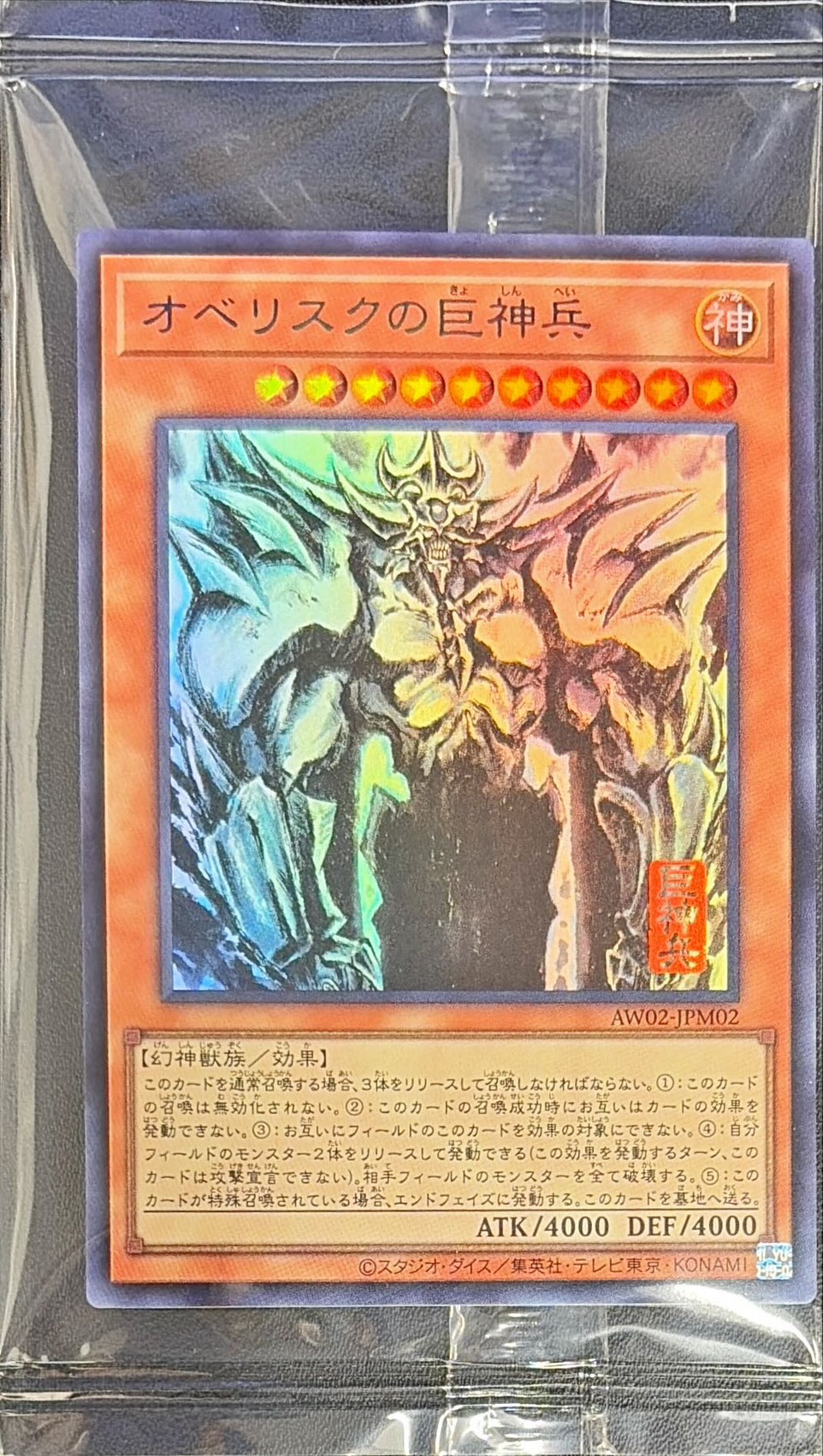 (未開封)オベリスクの巨神兵【ウルトラ】{AW02-JPM02}《モンスター》